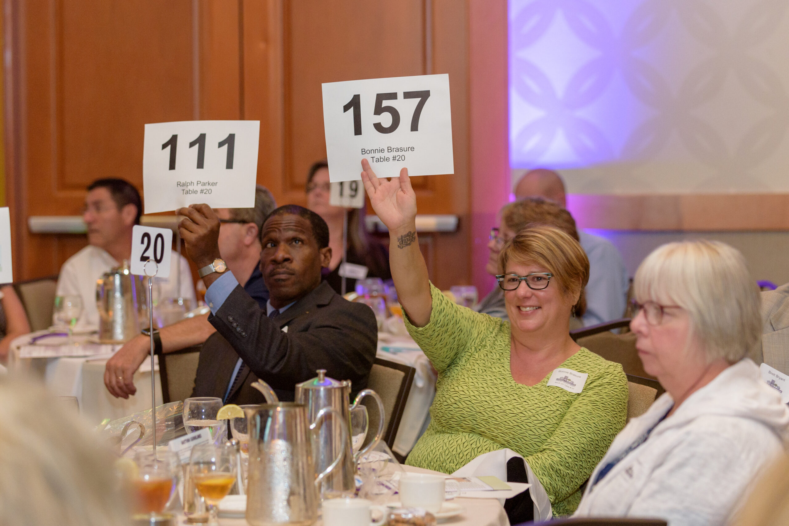 At a fundraiser, the goal is first and foremost to raise money for your work. But a key strategy to increase giving and build long-term support includes recognizing the people who are supporting you. Recognition plays into the two primary benefits of giving at events: the social benefit and the ego benefit. People want to be a part of something (social), and they want to be seen giving (ego). The best way to recognize people for their contributions? Arms raised and bid paddles in the air, saying “I’m in. I’m with you.”